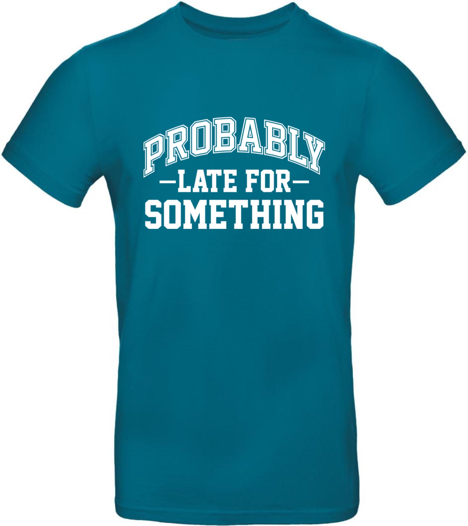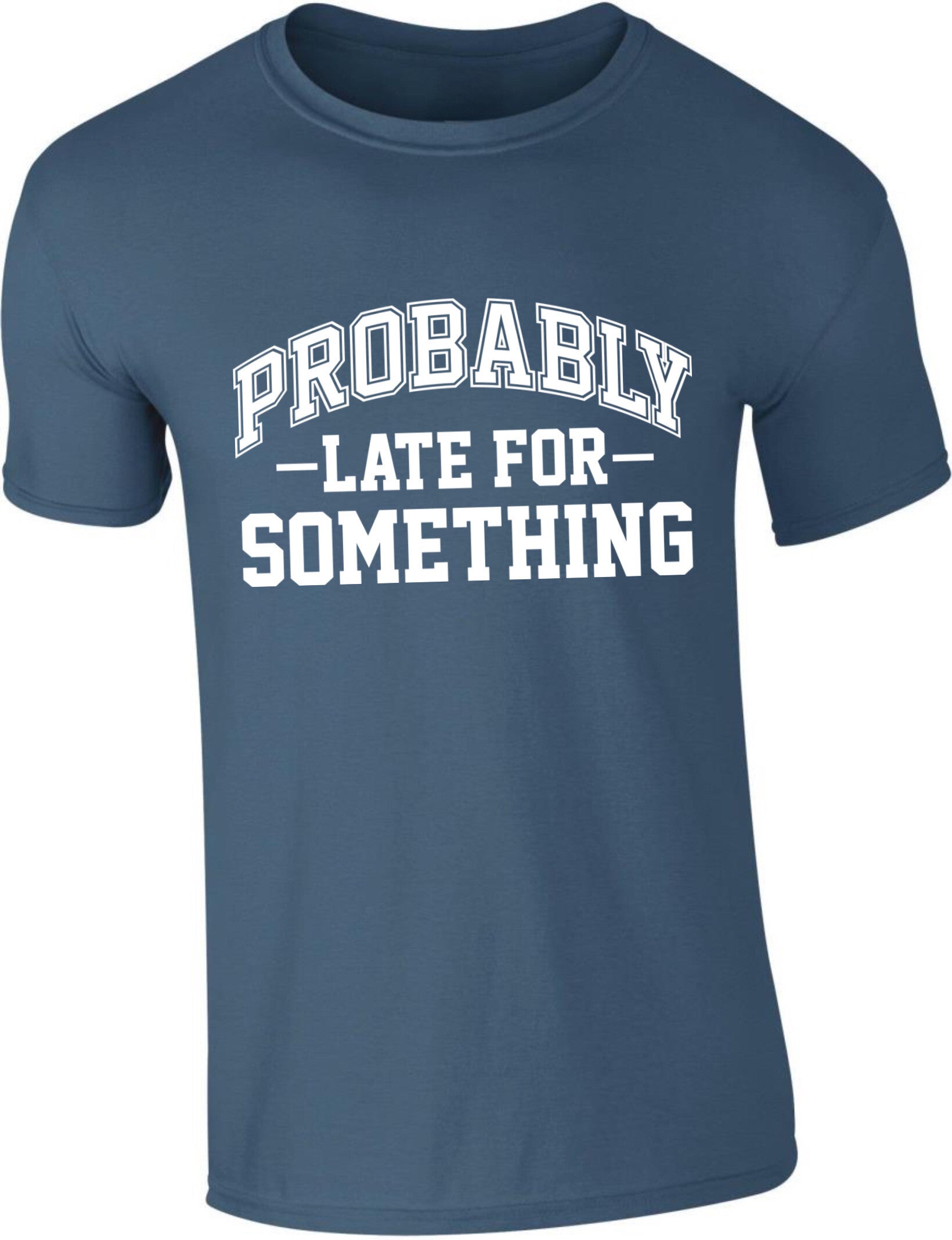 Het Tshirt voor iemand die altijd te laat is. Leuk als cadeau of om lekker zelf te dragen.